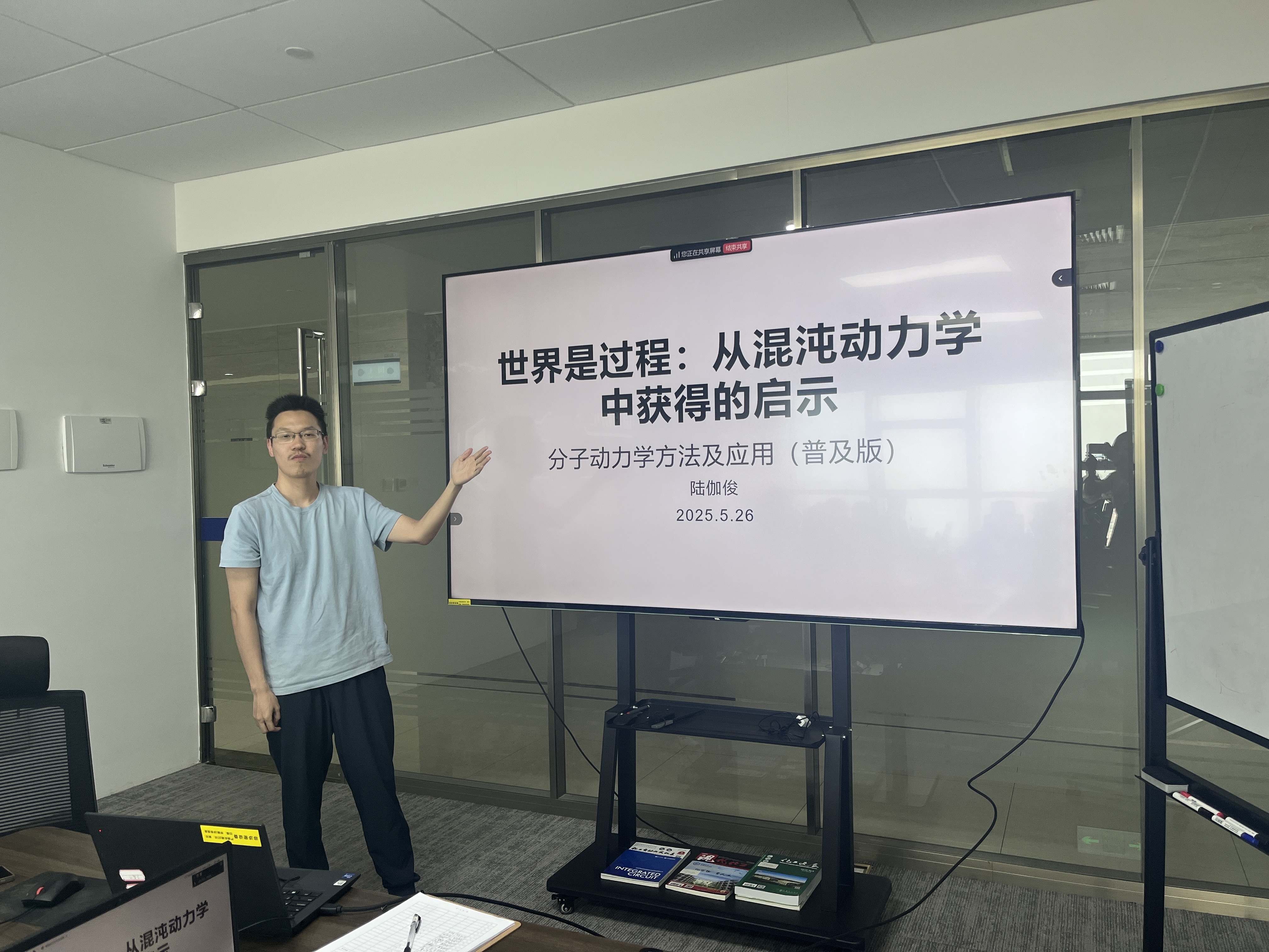國工智能AI課題-小分子及高分子分子動力學計算包課題負責人陸伽俊博士,特別強調了現代計算技術如何解決模擬中的"時間尺度困境"和"遍歷性問題"等關鍵挑戰。