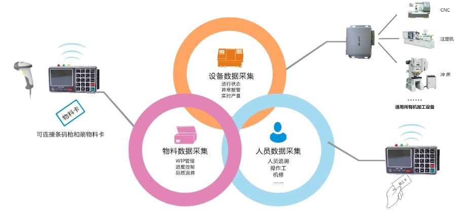 數據采集MES制造執行系統進行數據統計和生產管理的基礎。MES根據不同的生產情況、投料、設備、人員、工藝所產生的不同類型的數據要采用不同的數據采集方式。