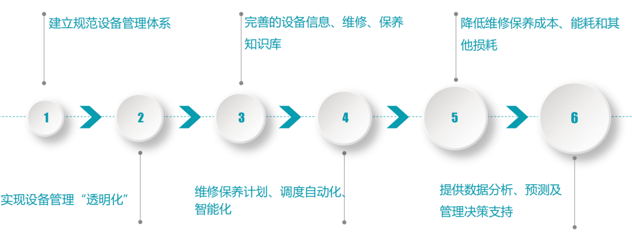 設備管理系統是管理設備的信息化軟件系統。其業務功能涵蓋了從設備采購、驗收、使用、備件、點巡檢、保養、維修、檢定、能源到報廢的一整套完整的設備全生命周期的管理。以提高設備利用率和工作效率,降低設備運維成本為目標,從而提高企業設備管理信息化水平。
