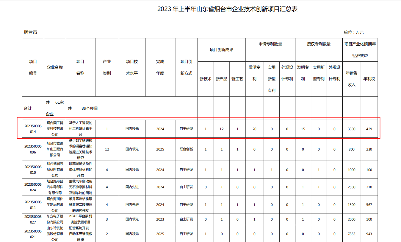 5月29日,山東省工信廳發(fā)布《山東省工業(yè)和信息化廳關(guān)于印發(fā)2023年山東省第一批技術(shù)創(chuàng)新項目計劃的通知》,國工智能“基于人工智能的化工科研計算平臺”入選此次創(chuàng)新項目計劃。